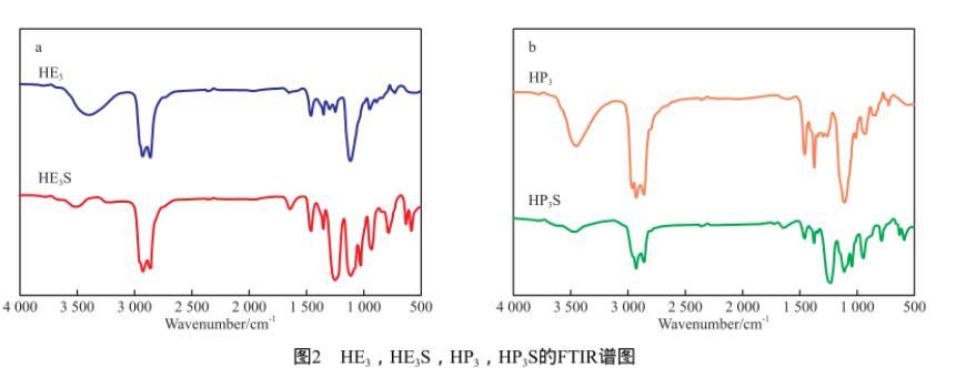 可見,產(chǎn)物的1H NMR譜圖分析結(jié)果與HE3S和HP3S的理論分子式結(jié)構(gòu)相吻合,表明成功得到了目標(biāo)產(chǎn)物。
